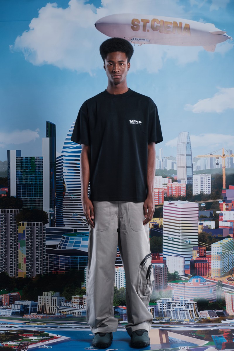 A camiseta ‘AtomiC Heavy Tee’ é confeccionada em Suedine preto, um tecido nobre, de textura aveludada e toque macio, com experiência de uso confortável e caimento estruturado.