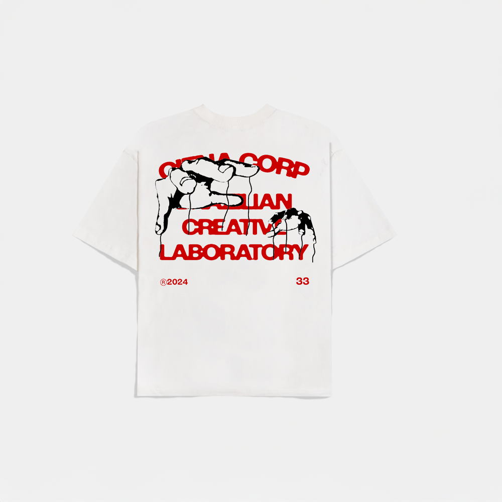 A camiseta ‘Ciena Corp Control Heavy Tee’ é confeccionada em Suedine off-white, um tecido nobre, de textura aveludada e toque macio, com experiência de uso confortável e caimento estruturado.