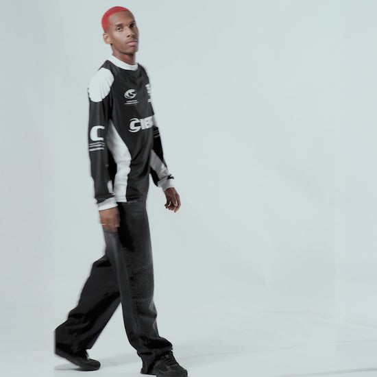 A CL Racer Jersey Black é confeccionada em Malha Dry Fit, com visual inspirado em uniformes de times de competição.