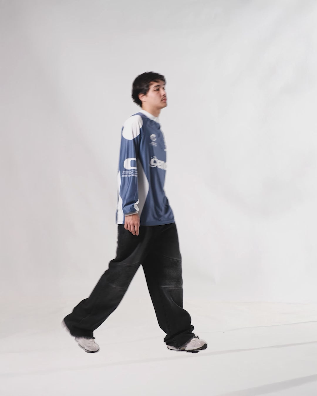 A CL Racer Jersey Blue é confeccionada em Malha Dry Fit, com visual inspirado em uniformes de times de competição.