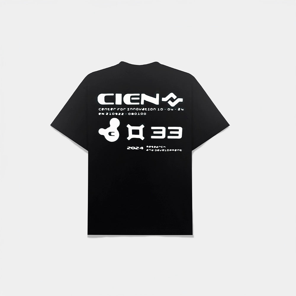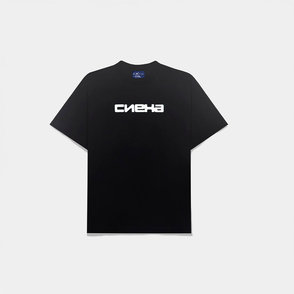 A camiseta ‘Credential Heavy Tee’ é confeccionada em Suedine preto, um tecido nobre, de textura aveludada e toque macio, com experiência de uso confortável e caimento estruturado.