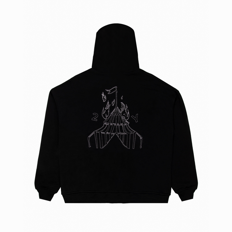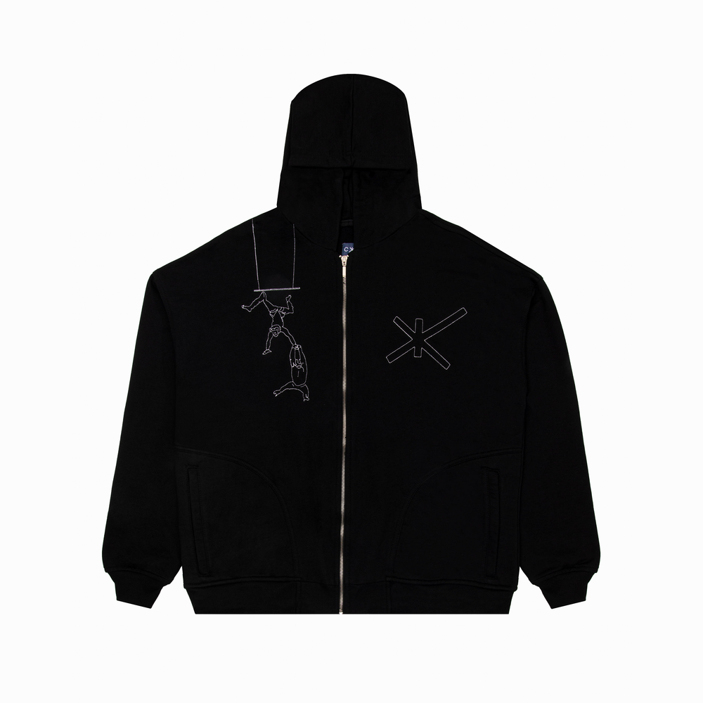 O Moletom "Embroidered Scimmie Zip Hoodie" é confeccionado em moletom sem felpa na cor preta, 50% algodão 50% poliéster com gramatura de 350GSM