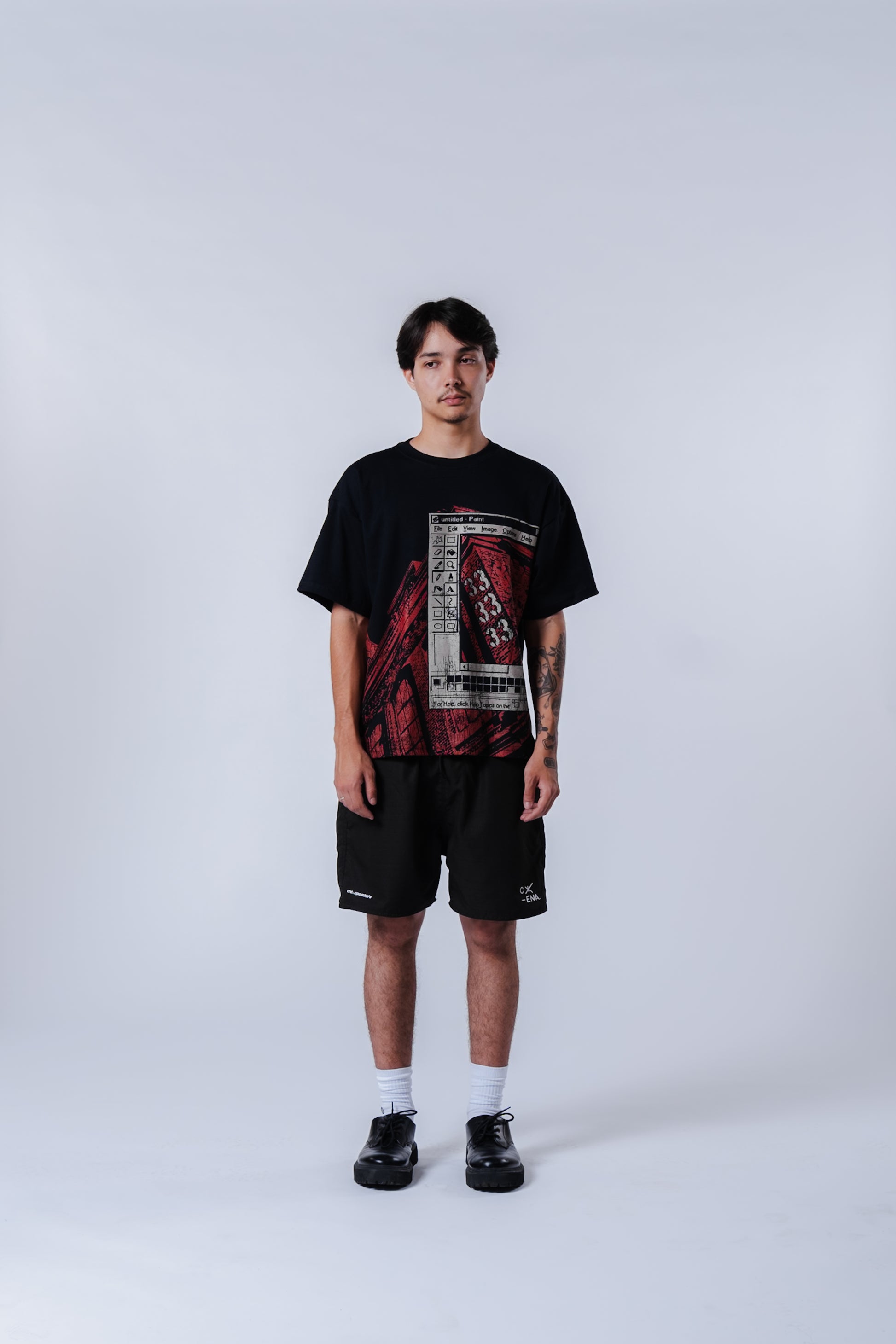 A camiseta Factory Paint Black Tee é confeccionada em Suedine preto, um tecido nobre, de textura aveludada e toque macio, com experiência de uso confortável e caimento estruturado.