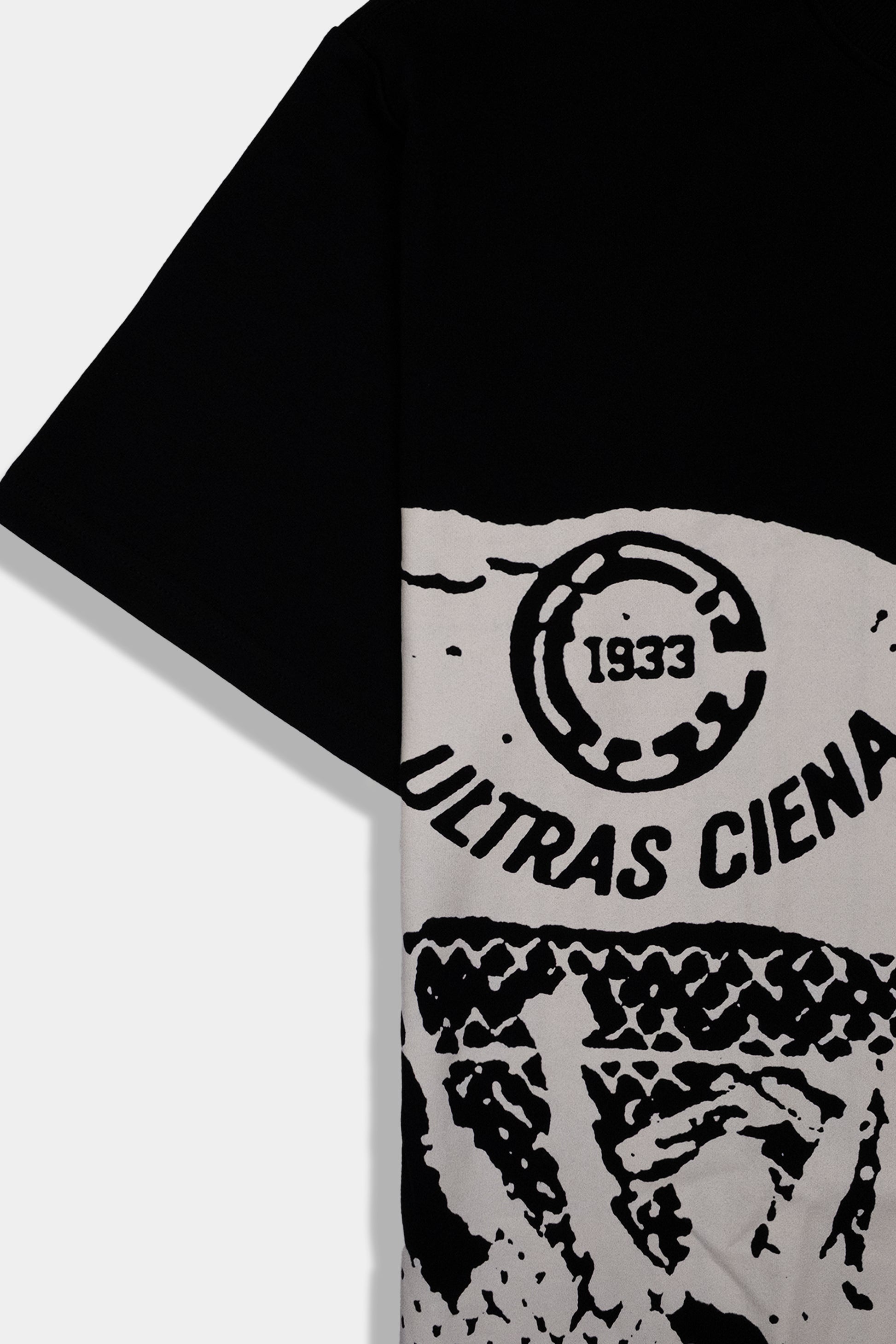 A camiseta Fanatic Heavy Tee é confeccionada em Suedine preto, um tecido nobre, de textura aveludada e toque macio, com experiência de uso confortável e caimento estruturado.