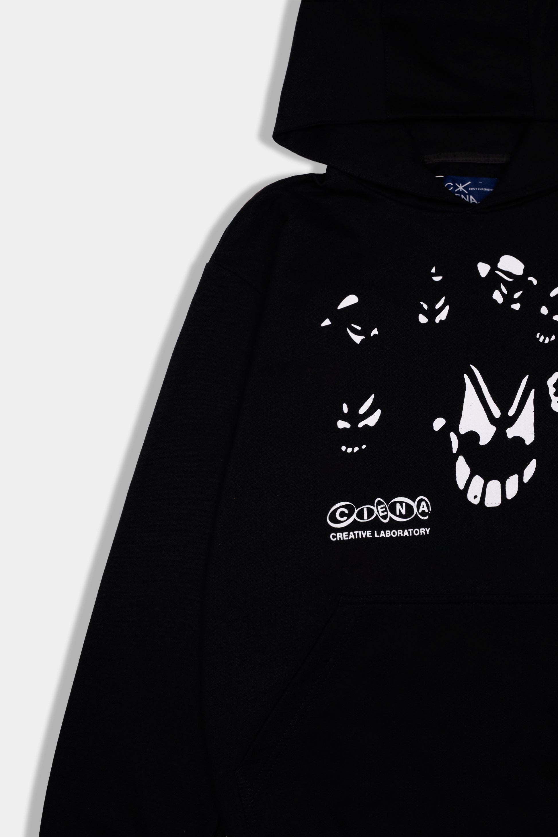 O Mancha Hoodie é confeccionado em Moletom com felpa na cor preta.