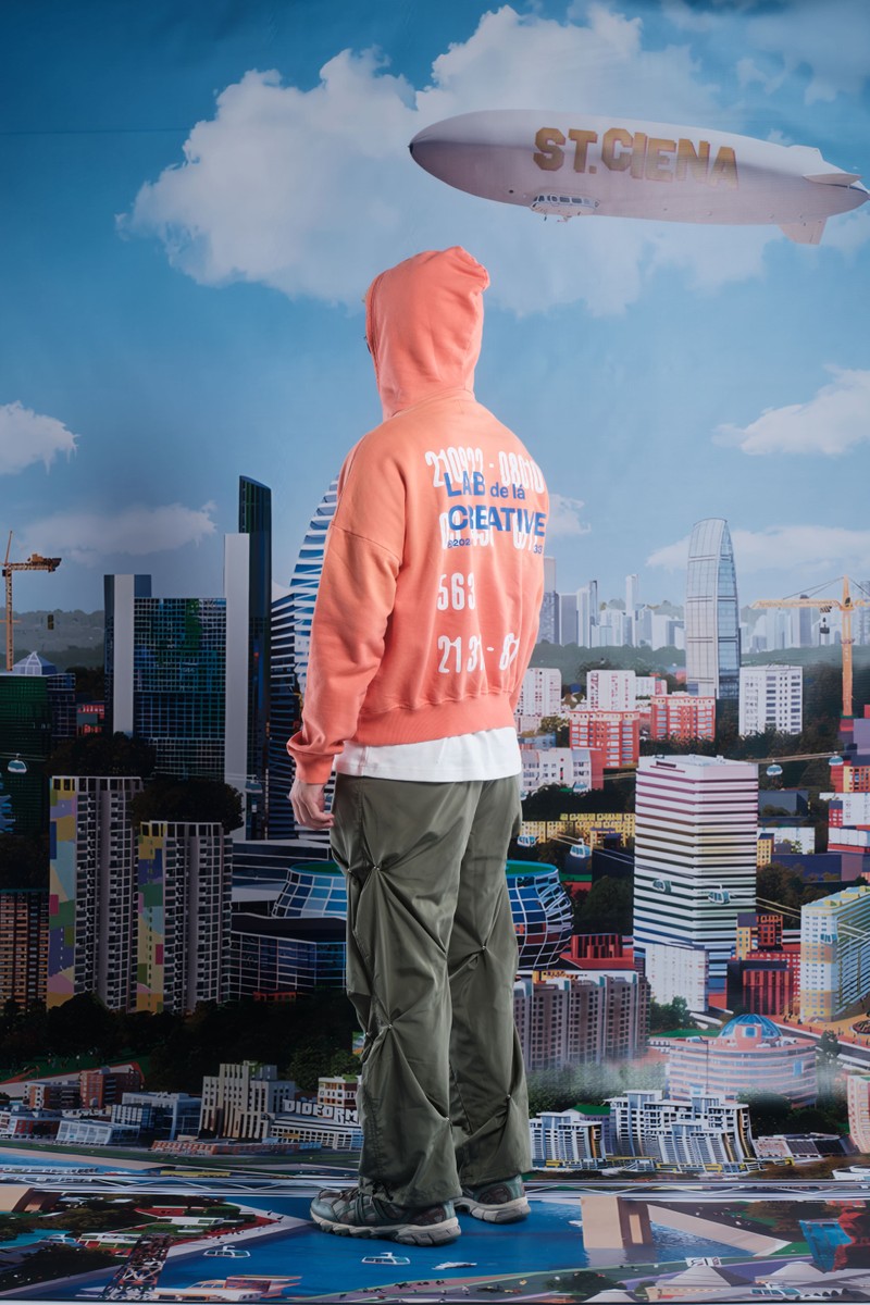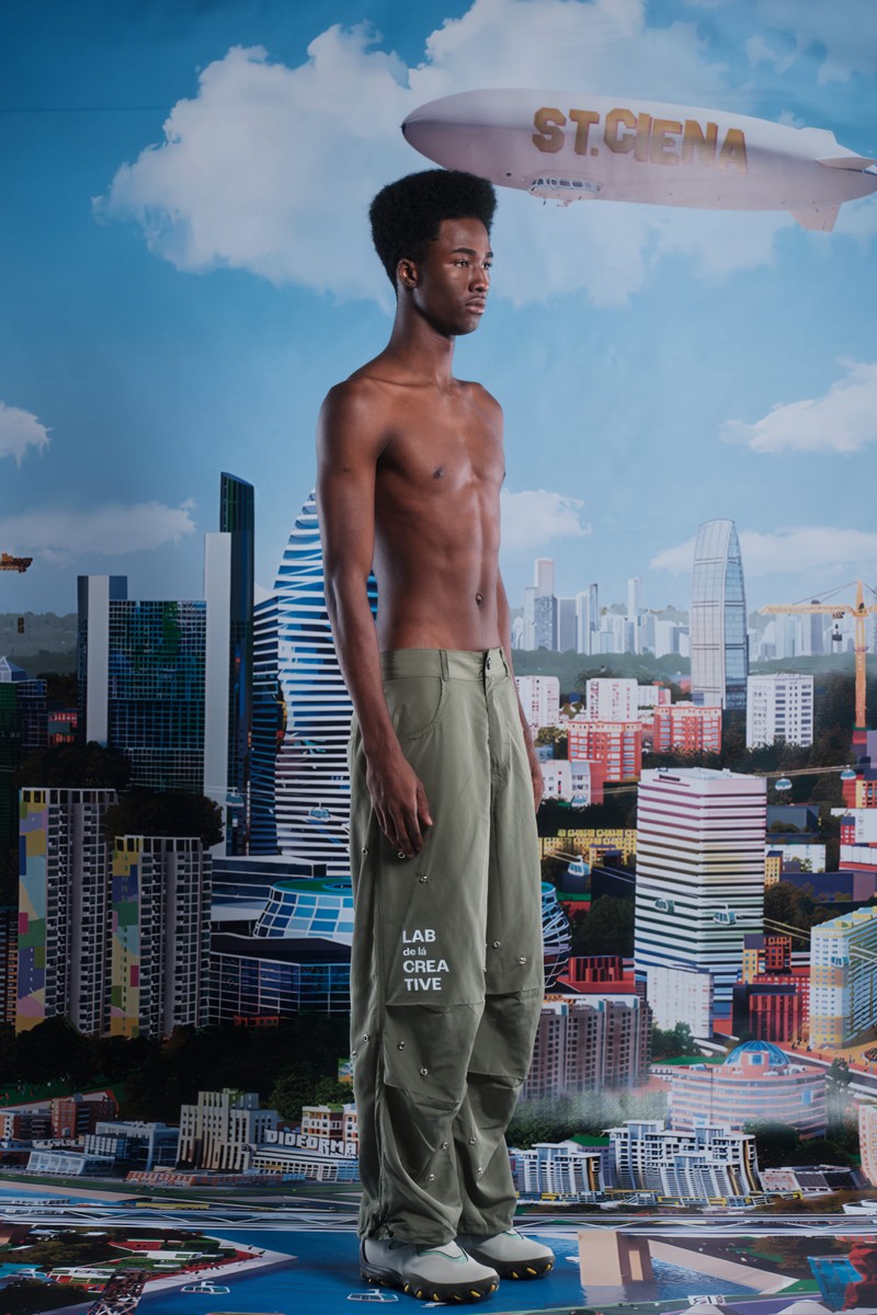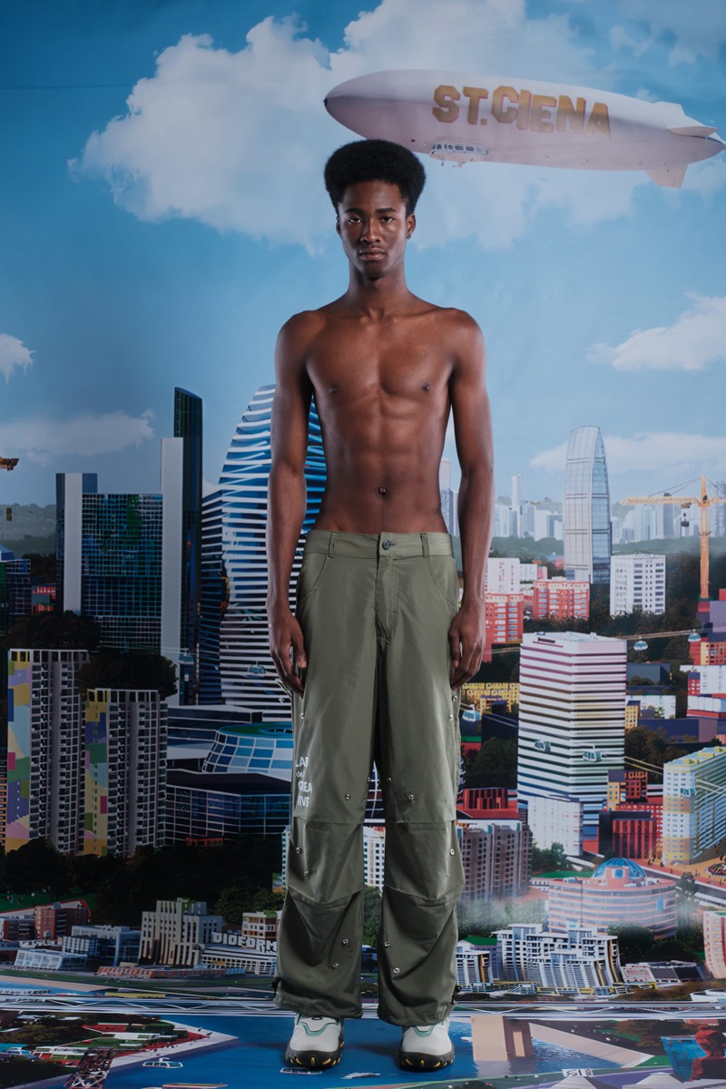 O produto utiliza a modelagem "parachute", a calça conta com quatro bolsos, botões de pressão para ajuste e estampa frontal em DTF.